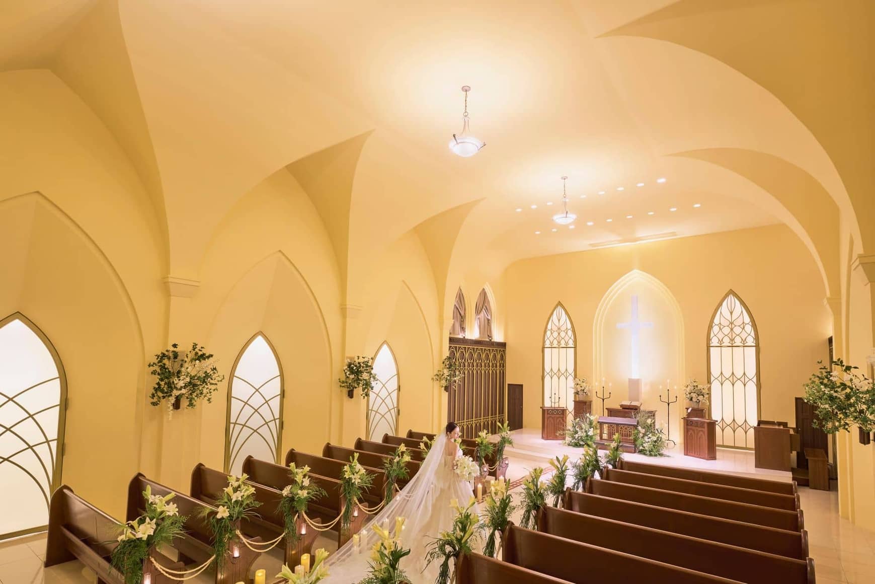 天井高7m・大理石が美しい13mのバージンロード広がる、神聖な礼拝堂。